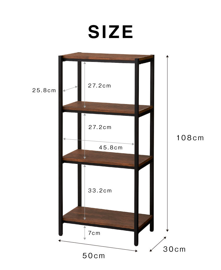 ヴィンテージ 四段ラック 4段 ラック 幅50 奥行き30 収納 オープンラック スチールラック 茶 ブラウン シェルフ 木目調 おしゃれ 棚 本棚(代引不可)