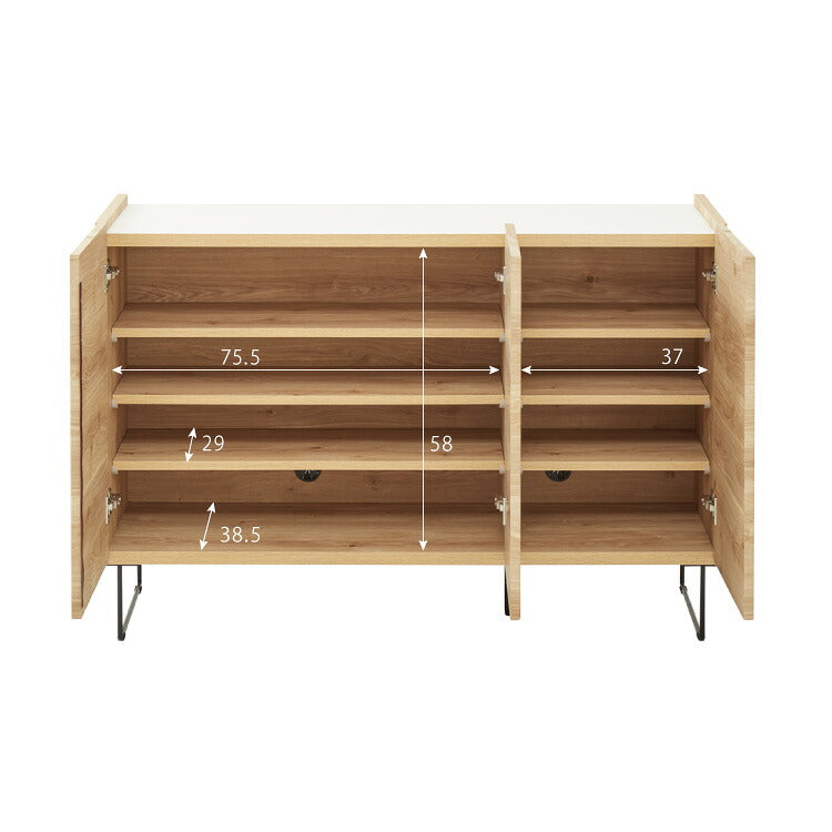 キャビネット 幅120 白 オーク 北欧 木製 おしゃれ カウンター 間仕切り 完成品 国産 背面化粧 ナチュラル 木目 オレフィン 脚付き 収納 チェスト リビング 収納 スチール脚(代引不可)