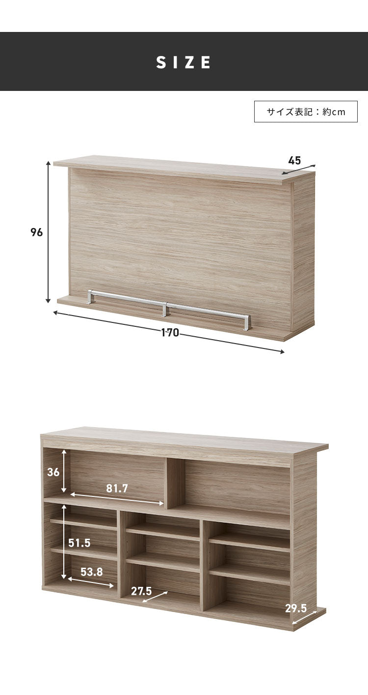 バーカウンター 幅170 高96 日本製 完成品 キッチンカウンター おしゃれ カウンターテーブル 間仕切り バーテーブル キッチンカウンター キッチン収納 カフェ レストラン 高級感 店舗 白(代引不可)