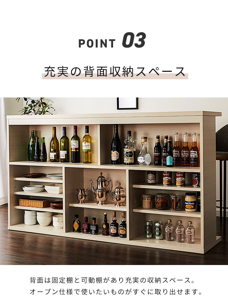 背面には調理器具やお酒やグラスなどを効率よく収納可能