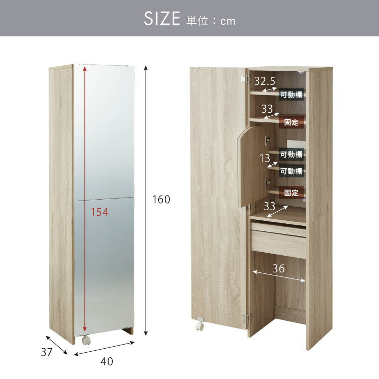 姿見 ドレッサー スツール付き ホワイト 白 おしゃれ 幅40 高さ160 コンセント付き アクセサリー 化粧品 収納 スリム 省スペース デスクドレッサー デスク 机 テーブル ナチュラル ブラウン