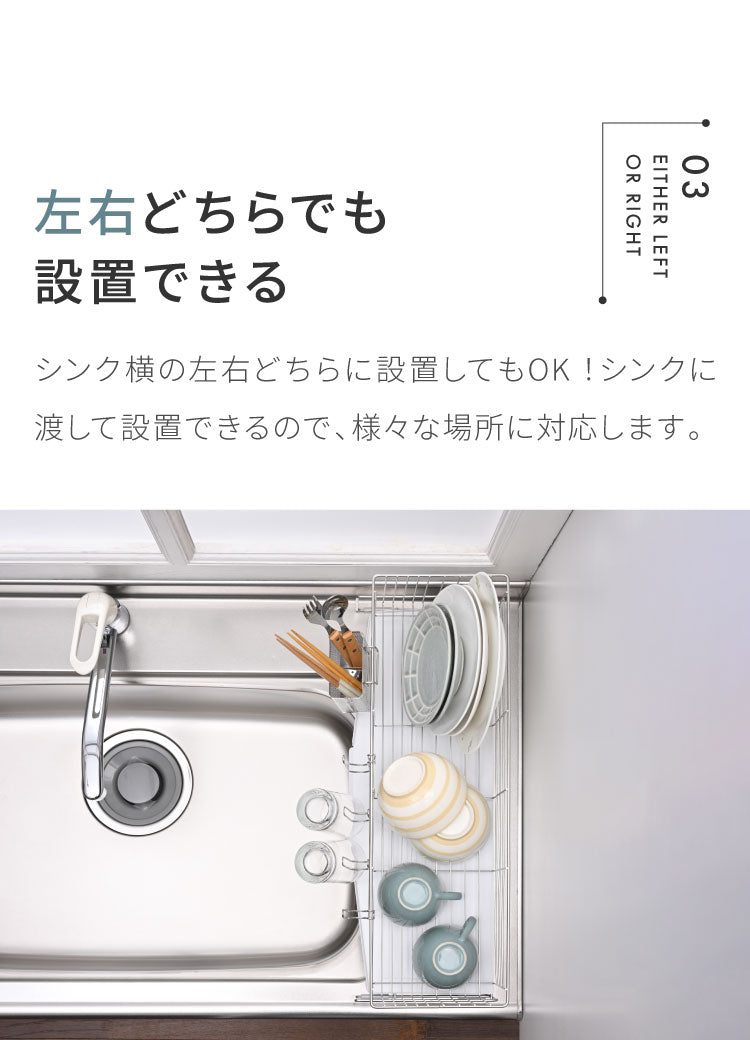 底ワイヤーの間隔を前後で変えているので、深皿や平皿など様々な形状の食器を安定して置けます。