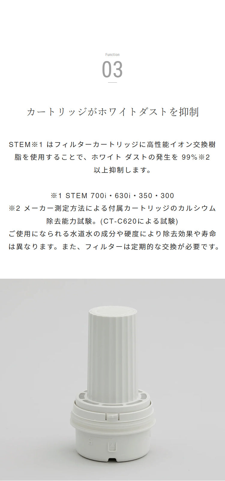 ※2.定期的な交換が必要です。交換目安は6か月です。ただし、ご使用になられる水道水の硬度によっては寿命が短くなることがあります。