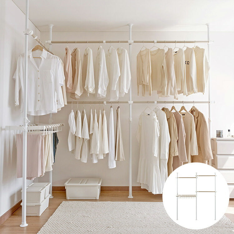 roomnhome 天井突っ張り式 ハンガーラック おしゃれ L字 4段 幅120cm~240cm 高さ170cm~280cm 突っ張りハンガーラック ウォークイン おしゃれ ルームアンドホーム(代引不可)