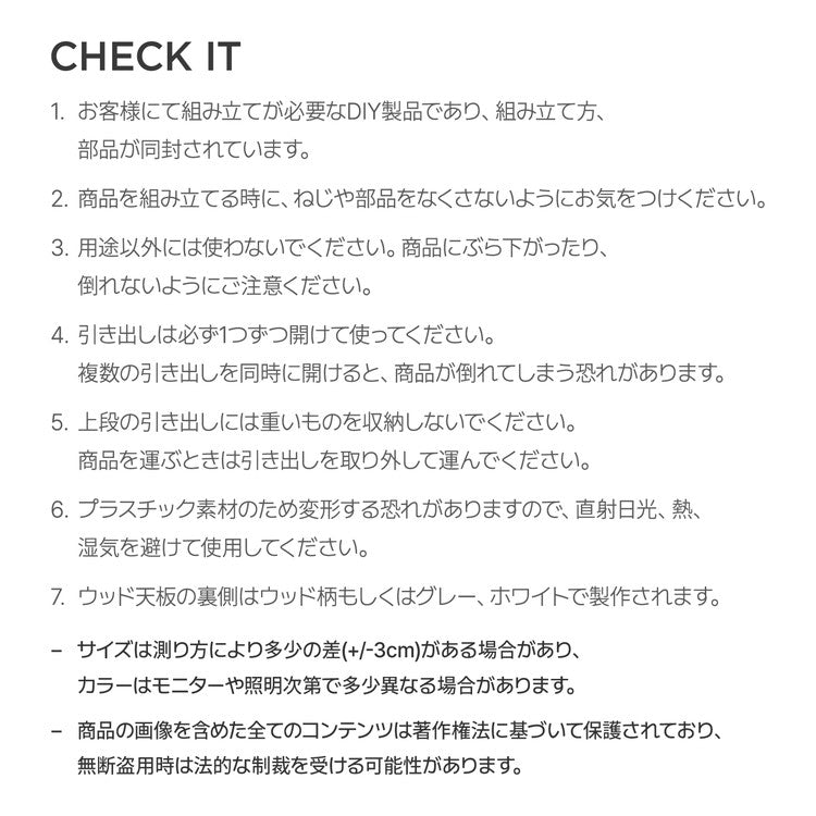 roomnhome テンバー チェスト お洒落 ウッド天板 ストッパー付きプラスチック 引き出し タンス 収納ボックス リビング 3段 リビングチェスト 韓国インテリア(代引不可)