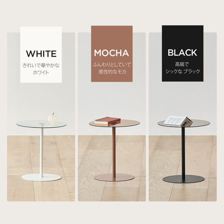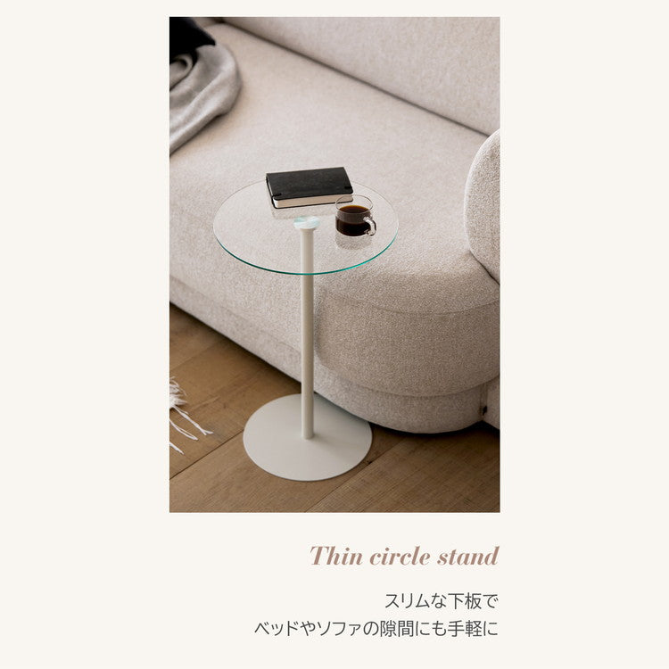 rooomnhome ガラス サイドテーブル 幅30cm ハイタイプ 丸形 アンドラウンドガラステーブル ダイニング ガラステーブル 韓国インテリア コンパクト 小さめ ミニテーブル ナイトテーブル
