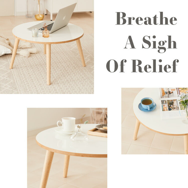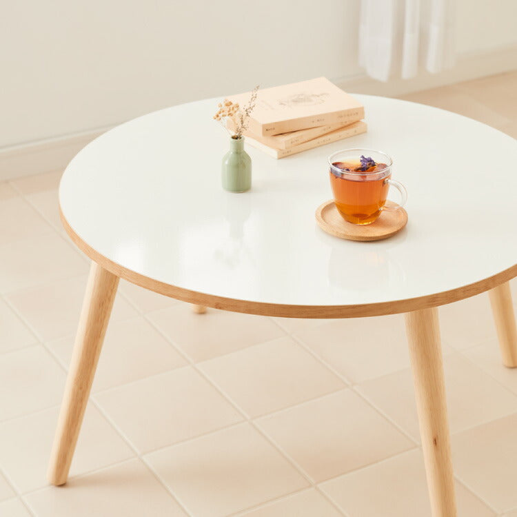 【roomnhome×リコメン堂】天然木脚 センターテーブル 丸型 白 80cm おしゃれ 韓国インテリア 耐荷重 約20kg ローテーブル【限定商品】かわいい シンプル インテリア モダン(代引不可)