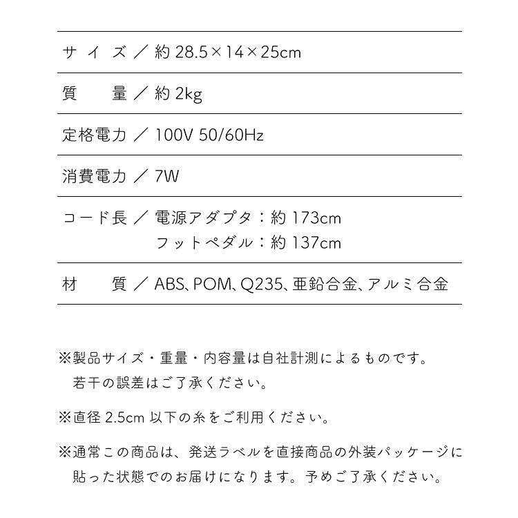 コード長:電源アダプタ/約173cm フットペダル/約137cm