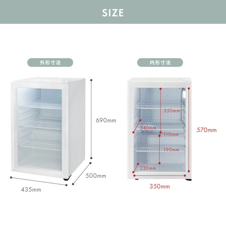 庫内がスッキリ見える前面ガラスのディスプレイ冷蔵庫。