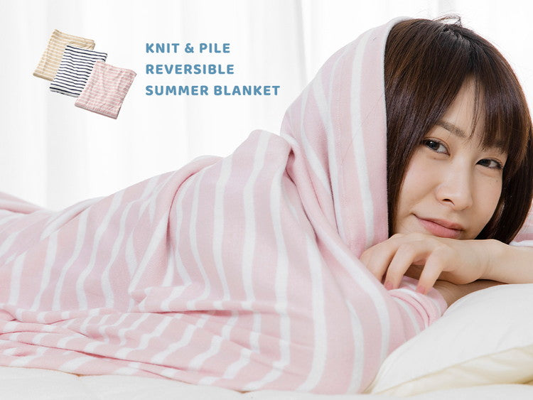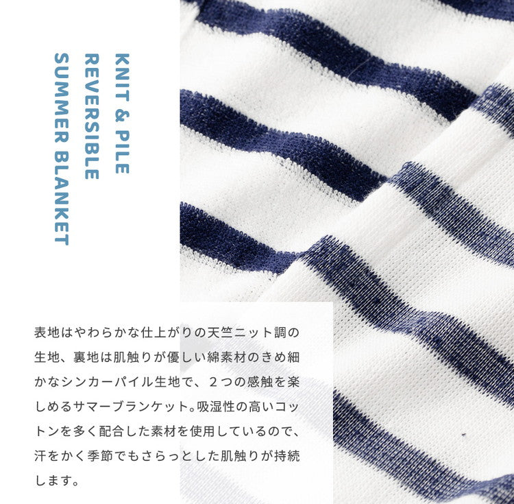 やわらかコットンニット ブランケット リバーシブル シングル 140×190cm 天笠ニット調 シンカーパイル サマーケット ケット ブランケット 掛け布団 毛布 洗濯 洗える 洗濯機 吸湿性