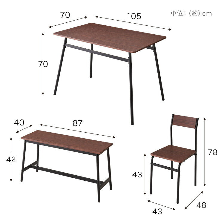 スチール ダイニング4点セット ダイニングテーブルセット 4人掛け 105cm幅 ダイニングテーブル 4点セット 北欧 ヴィンテージ おしゃれ 食卓テーブル 食卓 ダイニングチェア テーブル