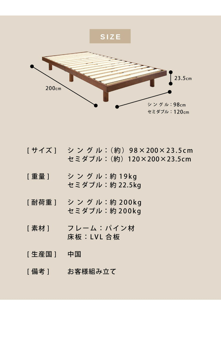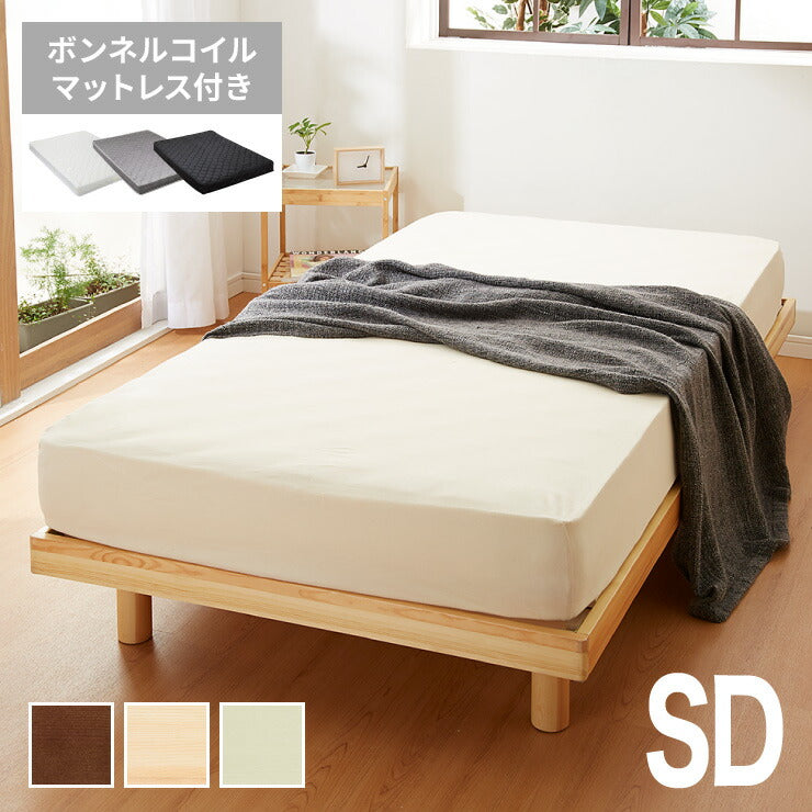 マットレスセット セミダブル すのこベッド ボンネルコイルマットレス ベッドセット 圧縮ロールマットレス ベッドフレーム(代引不可)