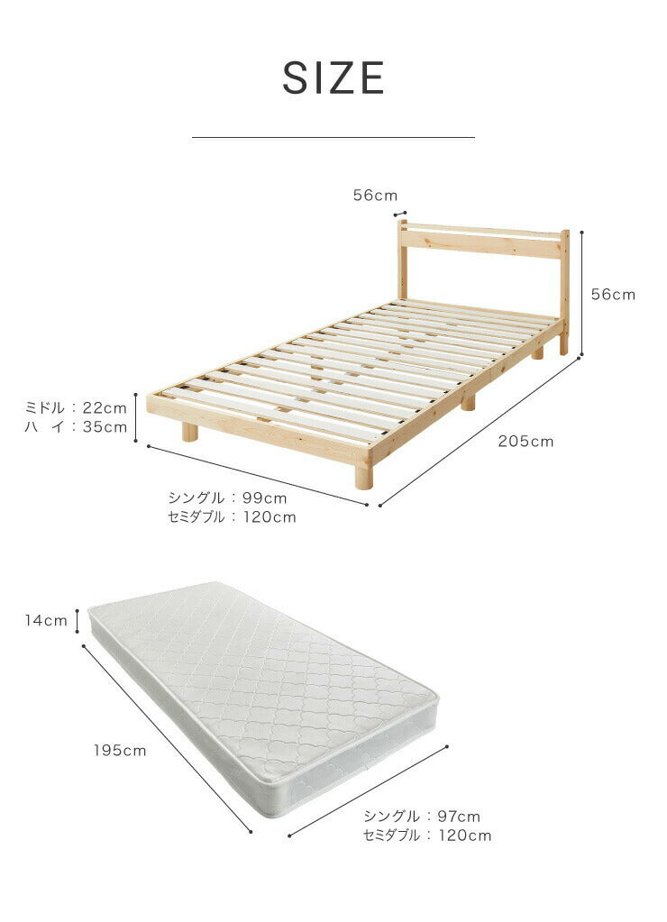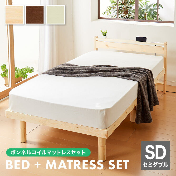 マットレスセット セミダブル スマホスタンド・コンセント付き すのこベッド ボンネルコイルマットレス ベッドセット(代引不可)