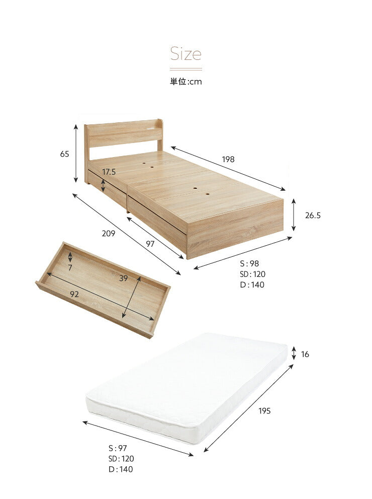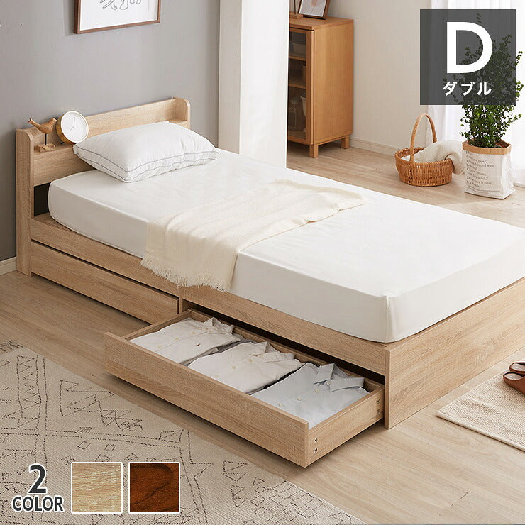 棚・コンセント付き 収納ベッド ダブル ポケットコイルマットレス付き 宮付き 棚付き 引出し付き ベット 収納 北欧 木製(代引不可)