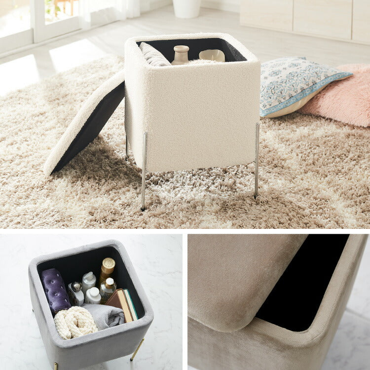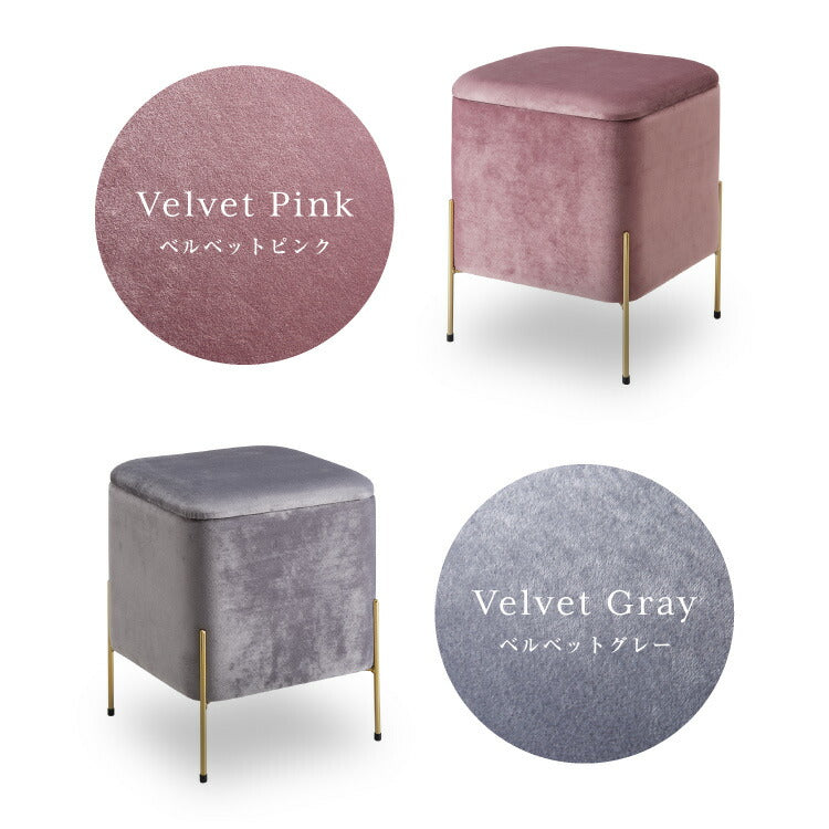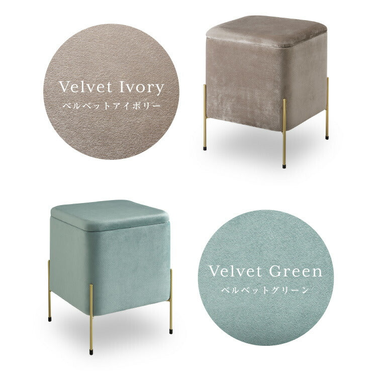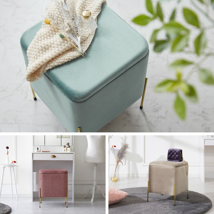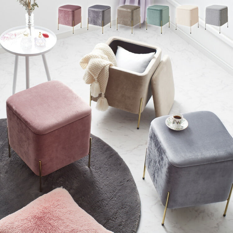 スツール 収納 おしゃれ ベルベッド ベロア くすみカラー 30×30cm 正方形 ゴールド 脚付き リビング ドレッサー 玄関 椅子 イス チェア オットマン かわいい 収納ボックス 収納スツール