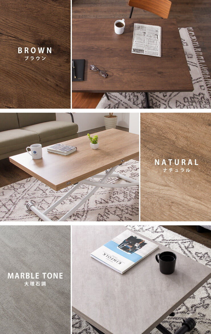 テーブル 天板が2倍に広がるガス圧昇降テーブル 110×60cm 110×120cm ブラウン ナチュラル 大理石調 おしゃれ シンプル 昇降テーブル ガス圧昇降式テーブル ダイニングテーブル リビングテーブル 高さ調節