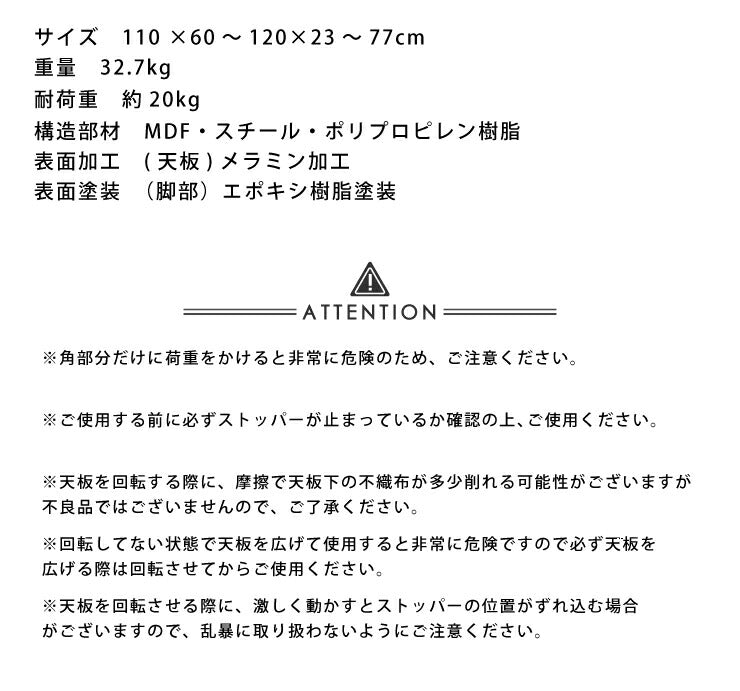 ・110×60cmが120×110cmの2倍に変わる天板拡張型昇降式テーブル