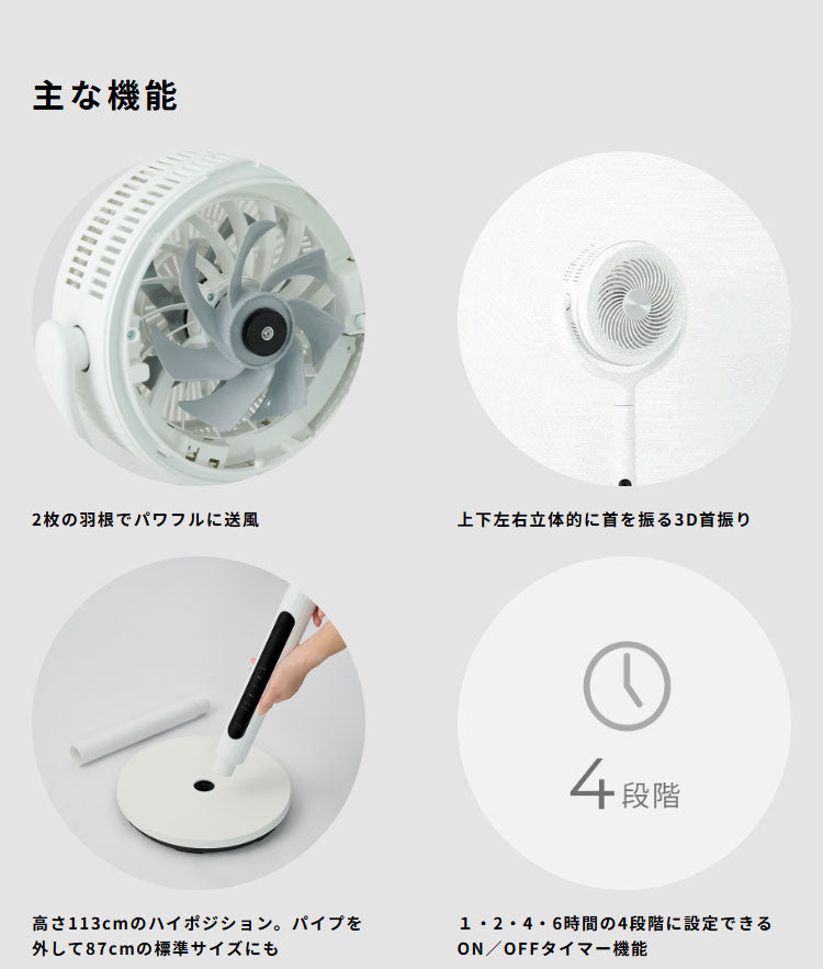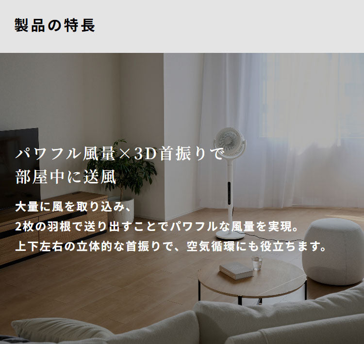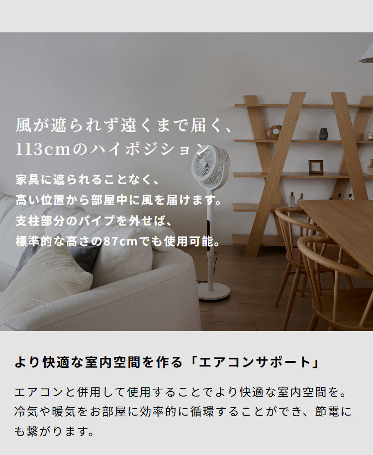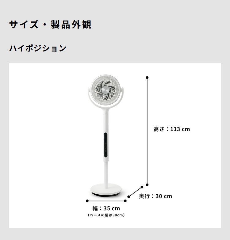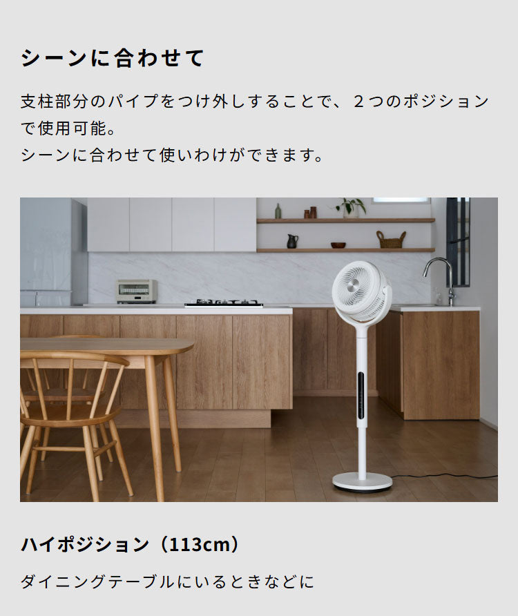 ・高さ113cmの“ハイポジション”で部屋中に送風。首の高さ調整は2段階。