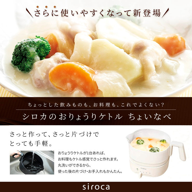 siroca シロカ おりょうりケトル ちょいなべ 電気ケトル SK-M153 1L ケトル 空焚き防止 丸洗い可 ポット 鍋