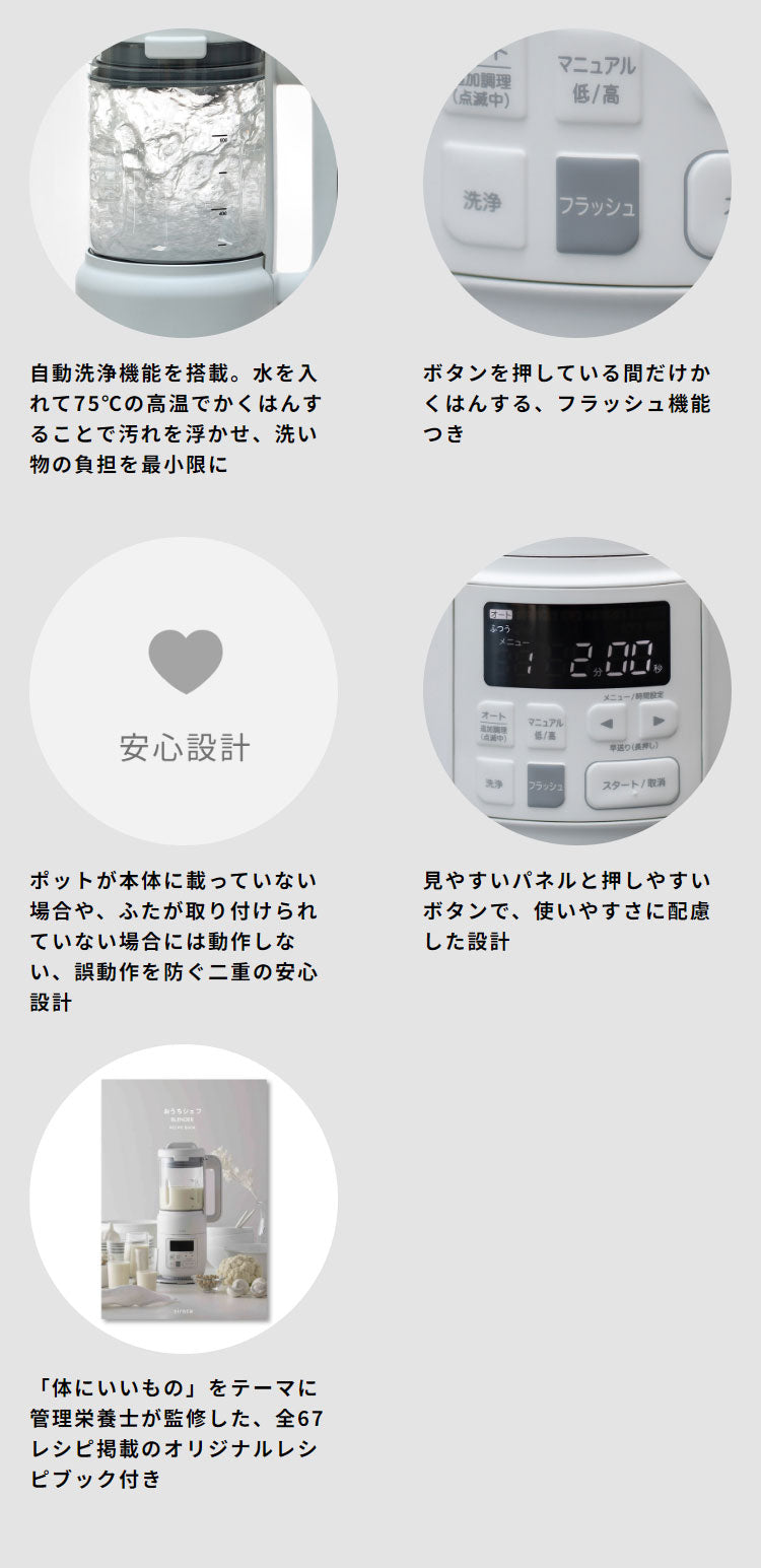 ヒーター機能付きブレンダー おうちシェフ BLENDER 保温機能 オートメニュー 冷凍果物も粉砕 温かいスープ スムージー まるごと豆乳 簡単お手入れ ホワイト シロカ siroca SM-S151