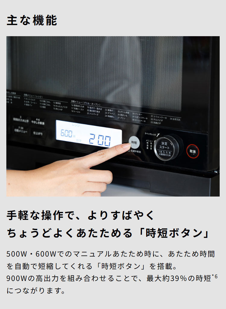 2.高出力900Wの組み合わせですばやく、ちょうどよくあたためる「時短ボタン」