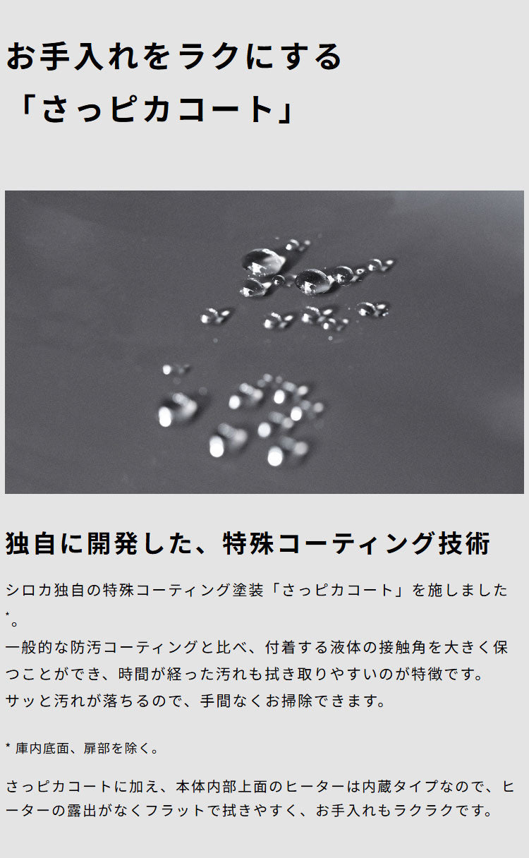 6.汚れがつきにくく拭き取りやすい「さっピカコート」でお手入れ簡単