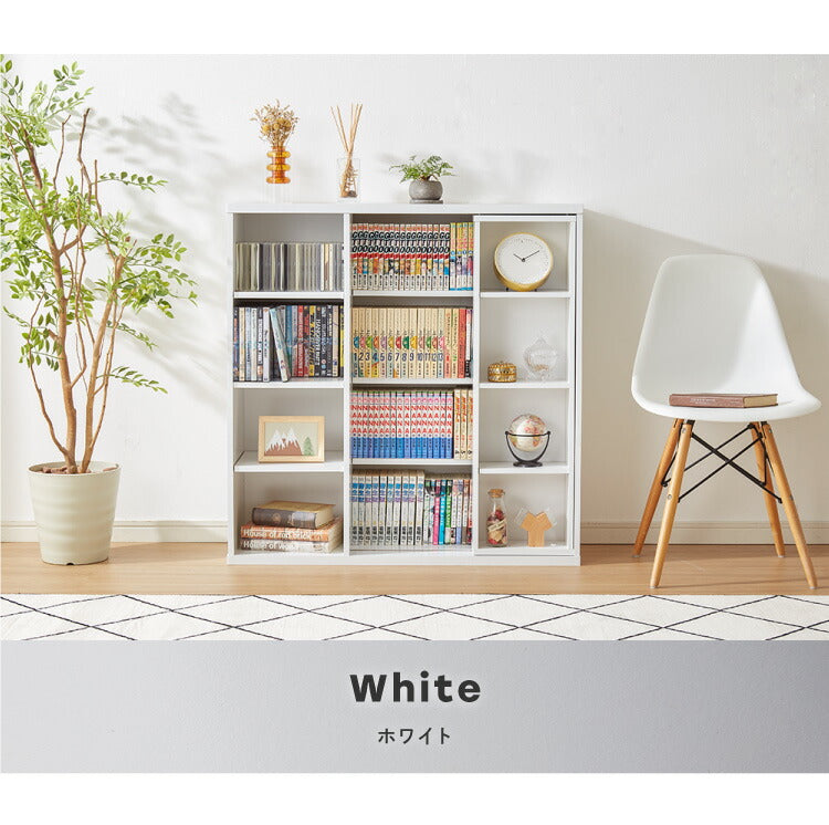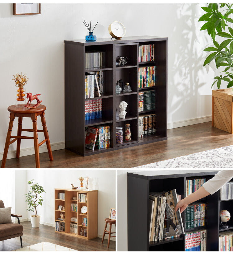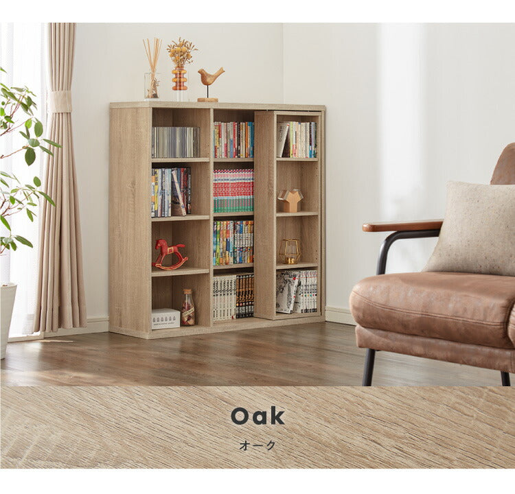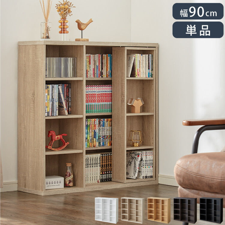 本棚 書棚 スライド式 幅90 シングル 4段 木製 コミックラック 漫画 書籍 収納 大容量 ブックシェルフ 木目 おしゃれ ブックラック 書斎棚