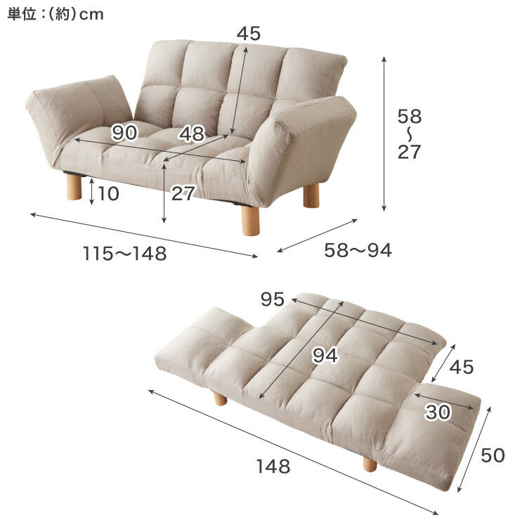ソファ、背面14段階、肘6段階、リクライニング、2人掛け、2人、二人、1人、一人、ファブリック、コンパクト、おしゃれ、肘付き、脚付き、新生活、一人暮らし、ひとり、ソファ、ローソファ、ロータイプ、ソファー、フロア、ソファ、コンパクト、ライトグレー、ベージュ、ピンク、アイスブルー、ネイビー、ブラウン