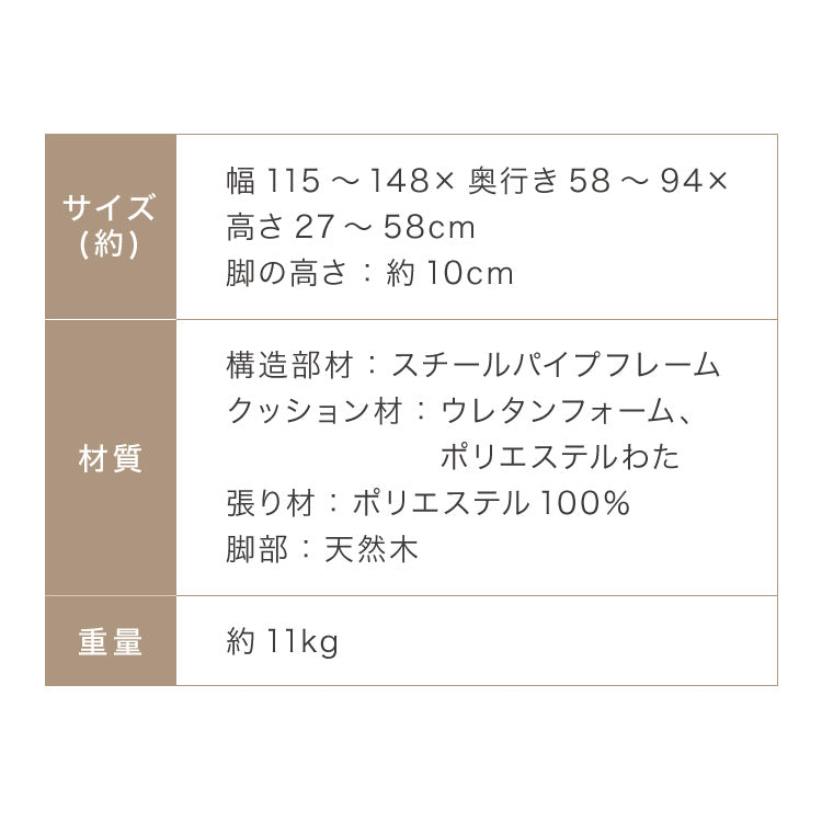 [最大寸法](約)幅115~148×奥行き58~94×高さ27~58cm