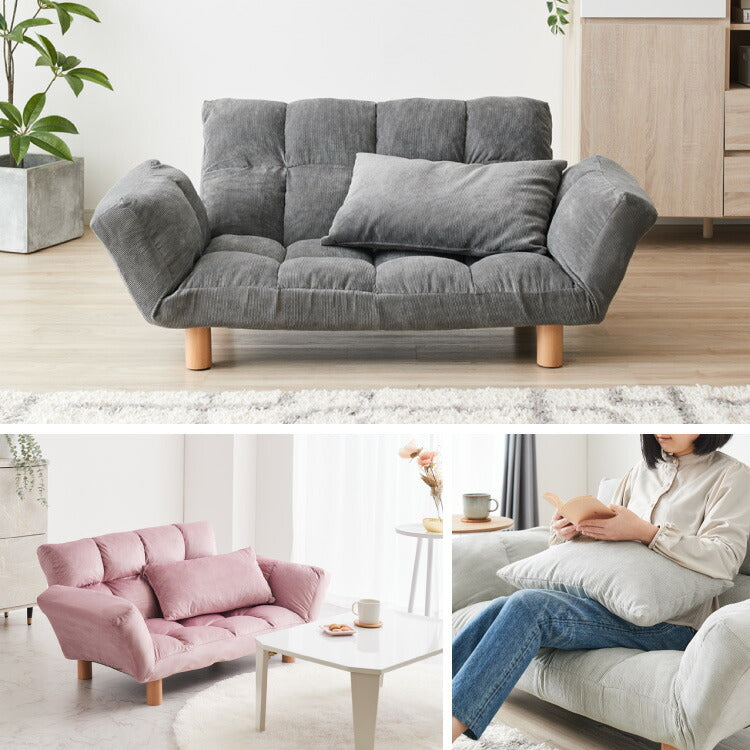 ソファ ソファー 2人掛け コンパクト リクライニング 背もたれ14段階調整 肘掛け6段階調整 ベロア コーデュロイ レザー 2way 北欧 シンプル カウチソファ フロアソファ ローソファ 二人掛 一人掛け