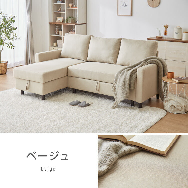 カウチソファ 3人掛け 3P ファブリック おしゃれ 収納 跳ね上げ収納 L字ソファ カウチ ソファベッド ソファーベッド ベッド リビングソファー モダン 北欧 お昼寝 寝れる 折りたたみ 一人暮らし