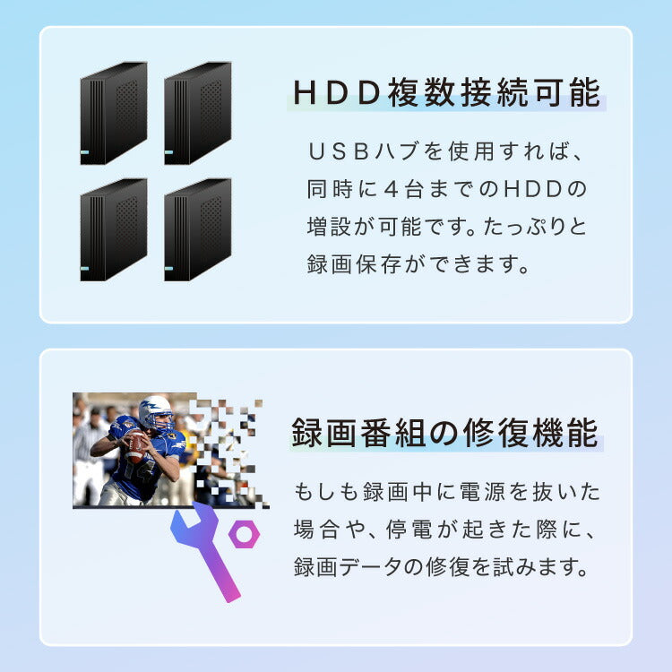 *外付けHDDを使用して録画する際、HDDがEXFAT形式であることを確認してください。