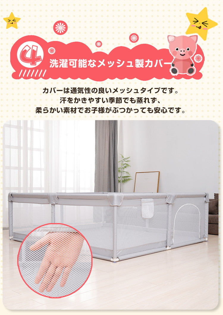 ベビーサークル メッシュ 180×200cm 大型 ハイタイプ 扉付き プレイヤード 大きい 自立式 ベビーゲート ベビー フェンス サークル 滑り止め 洗濯可能 洗える 赤ちゃん 子供