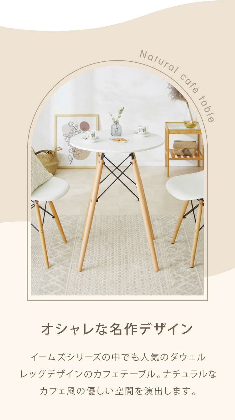 コーヒーテーブル、ダイニングテーブル、送料無料、ミッドセンチュリー、センターテーブル、デザイナーズ、モダン、リビング、イームズカフェテーブル、丸、一人暮らし、幅60cm、高さ75cm、円形、白、ホワイト、黒、ブラック、天然木使用、コンパクト、軽量、おしゃれ、シンプル、北欧、木脚、イームズテーブル、カフェテーブル、eams