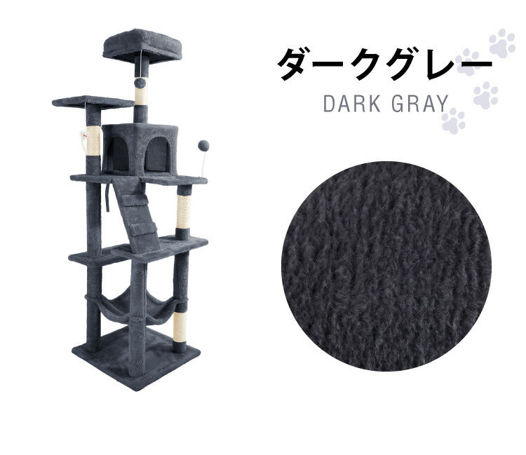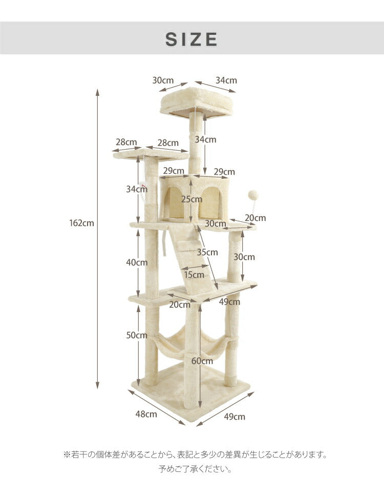 キャットタワー 据え置き スリム 49×48cm 高さ162cm 爪とぎ ハンモック 隠れ家 おしゃれ 運動不足 ストレス解消 猫用品 ペット用品 キャットハウス 猫タワー おもちゃ 省スペース コンパクト