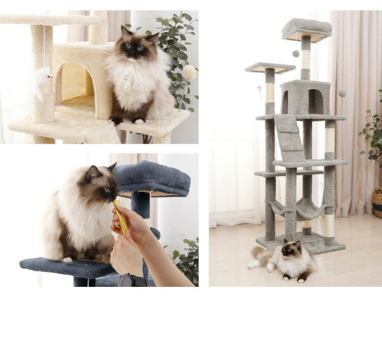 キャットタワー、キャットハウス、キャットツリー、猫タワー、据え置き、ハウス、ハンモック、猫、ねこ、ネコ、爪とぎ、つめとぎ、ベッド、おもちゃ、多頭飼い、シンプル、かわいい、インテリア、ペット、ペット用品、猫用品、省スペース、置き型、低ホルムアルデヒド、エコテックス、FSC認証、頑丈、安定
