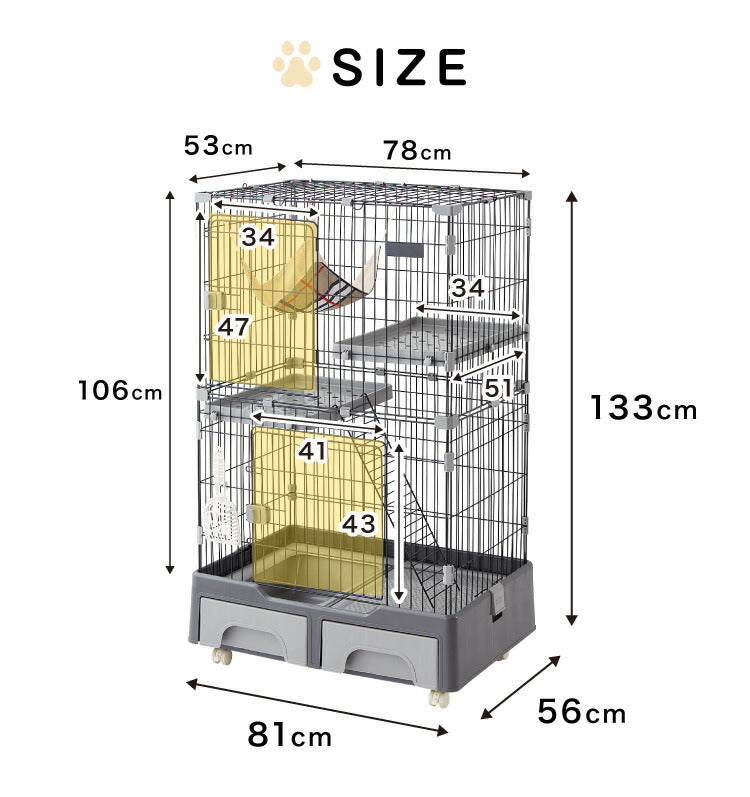 猫 ケージ 2段 おしゃれ スリム コンパクト キャスター付 収納型 トレイ付 ハンモック付 トイレ付 脱走防止 お手入れ簡単 ペットケージ キャットケージ キャット ケージ キャットハウス ペットハウス 室内 屋内