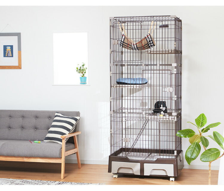 キャットケージ、3段、3段、ペット用品、ペットグッズ、キャット、猫ケージ、ケージ、ゲージ、トイレ、収納、お掃除簡単、お手入れ簡単、はしご、梯子、ドアロック、ハンモック、キャスター付き、組立、グレー、ブラウンネコ、猫用、大型、ハウス、多頭飼い、脱走防止、留守番、便利、安心、安全