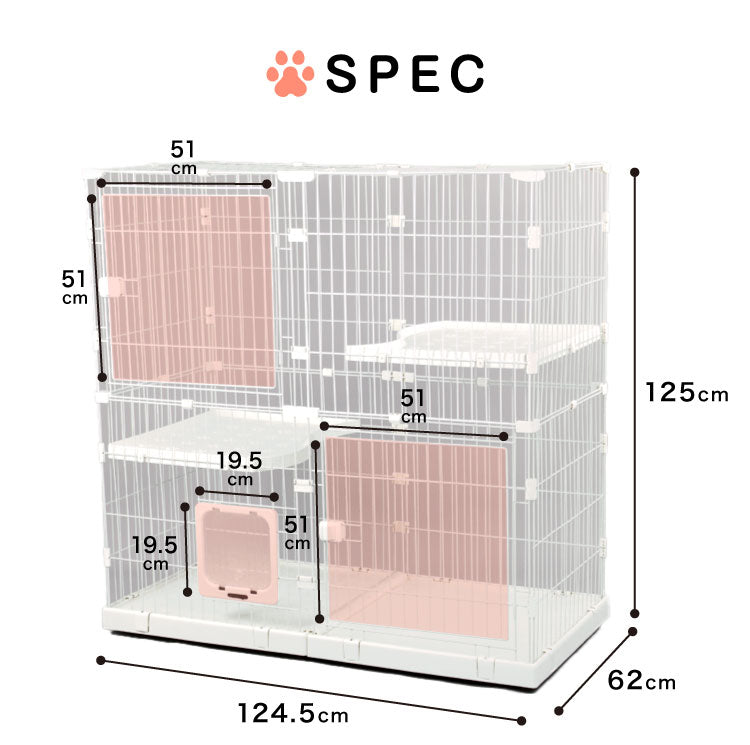 キャットケージ 大型 組み合わせ自由 ホワイト 2段 幅125cm 幅広設計 キャスター付き シンプル おしゃれ キャットゲージ ハウス キャットペットケージ ペットゲージ 保護 多頭飼い 保護 猫 ネコ ねこ