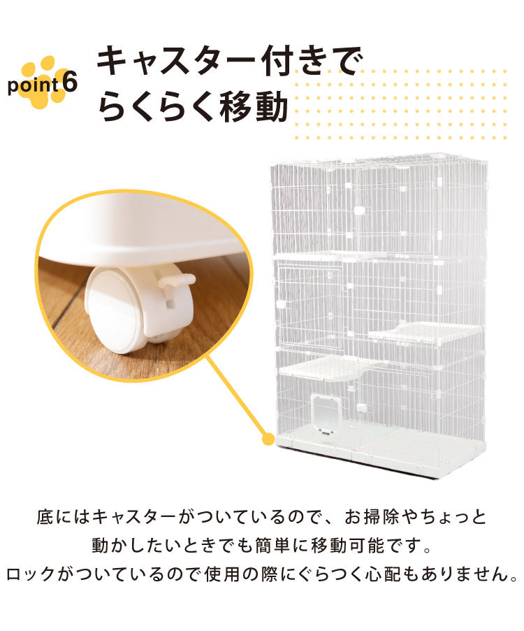 キャットケージ 大型 組み合わせ自由 ホワイト 3段 幅125cm 幅広設計 キャスター付き シンプル おしゃれ キャットゲージ ハウス キャットペットケージ ペットゲージ 保護 多頭飼い 保護 猫 ネコ ねこ