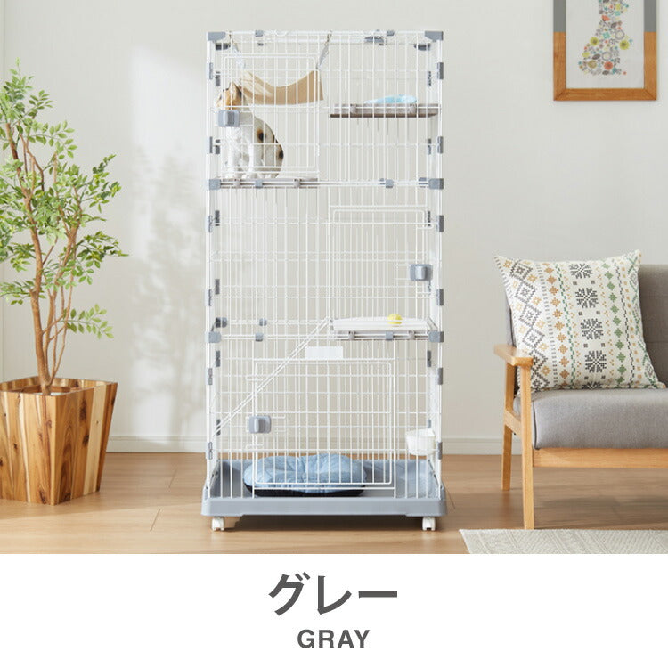 キャットケージ 3段 コンパクト ホワイト グレー スリム キャスター付 ハンモック 水飲みボウル ステップ台3段 多頭飼い 保護 脱走防止 シンプル おしゃれ 室内 ケージ 猫ケージ ペットケージ ハウス