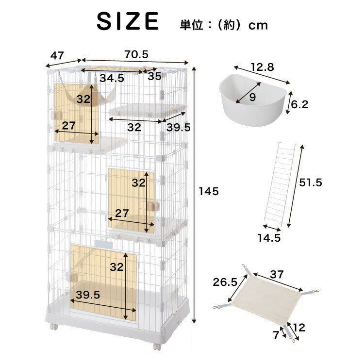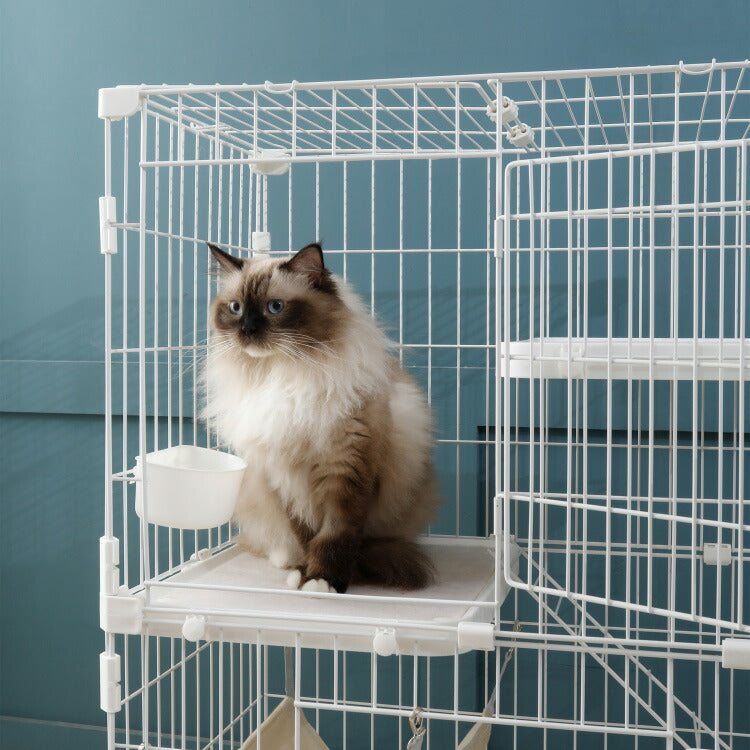 ネコ用、猫グッズ、ペット、ペットグッズ、猫用品、ペット用品、キャットハウス、ハウス、多段、多頭、スチール、ペットゲージ、お手入れ簡単、猫ゲージ、高級感、北欧、子猫、シニア猫、室内飼い、白、梯子付き、ステップ付き、階段付き、ハンモック付き、ロック、ロック扉、天井ドア、工具不要、頑丈