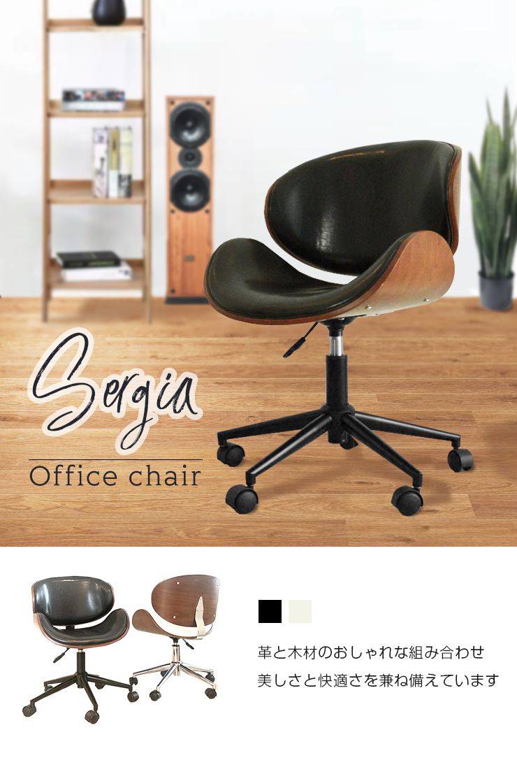 ・革と木材を組み合わせたモダンなデザインのデスクチェアです