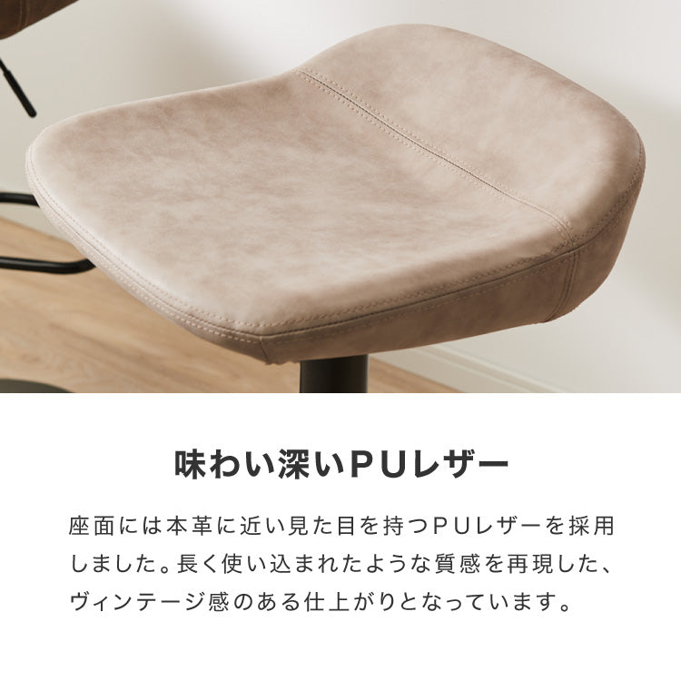 カウンターチェア、ガス圧式、回転式、360度回転、360°、ガス圧昇降、ガス圧昇降式、高さ調整可能、キッチンスツール、カフェチェア、ヴィンテージ、レザー、レトロ、モダン、椅子、イス、チェア、スツール、ミッドセンチュリー、韓国、北欧、オフィス、店舗、カフェ、ダイニング、高級感、ブラウン、グリーン、ブラック、グレー、カフェスタイル、カフェテイスト、西海岸、パーソナルチェア