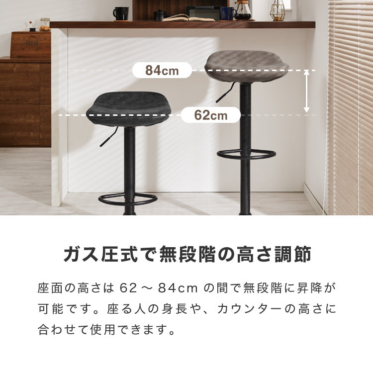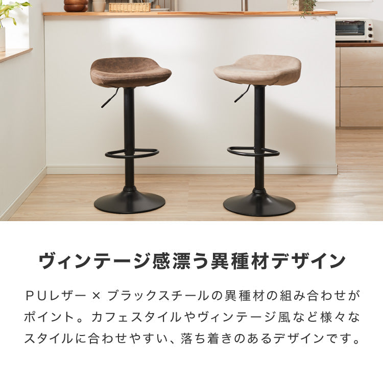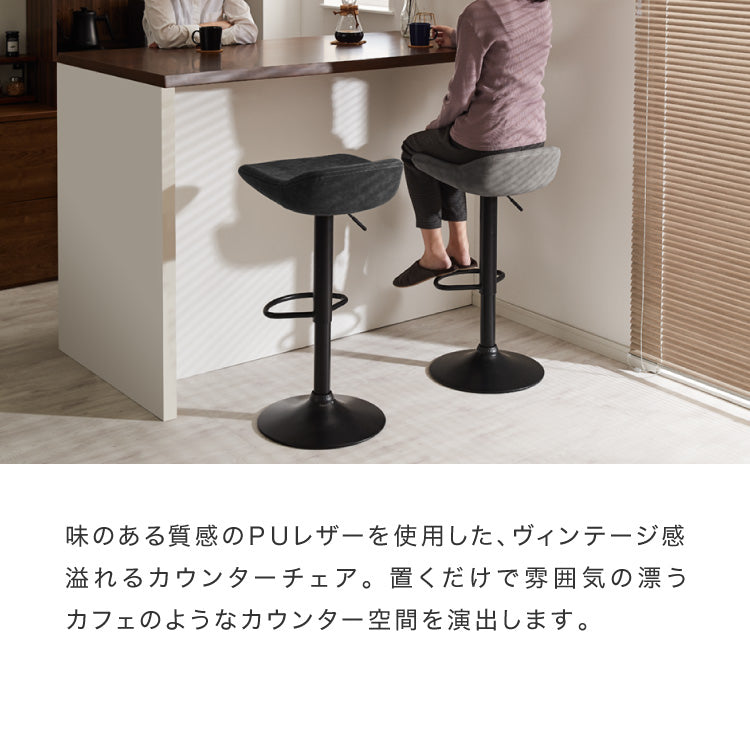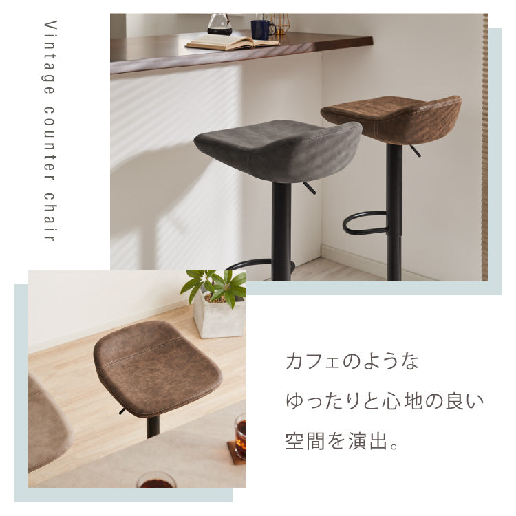 カウンターチェア、ガス圧式、回転式、360度回転、360°、ガス圧昇降、ガス圧昇降式、高さ調整可能、キッチンスツール、カフェチェア、ヴィンテージ、レザー、レトロ、モダン、椅子、イス、チェア、スツール、ミッドセンチュリー、韓国、北欧、オフィス、店舗、カフェ、ダイニング、高級感、ブラウン、グリーン、ブラック、グレー、カフェスタイル、カフェテイスト、西海岸、パーソナルチェア