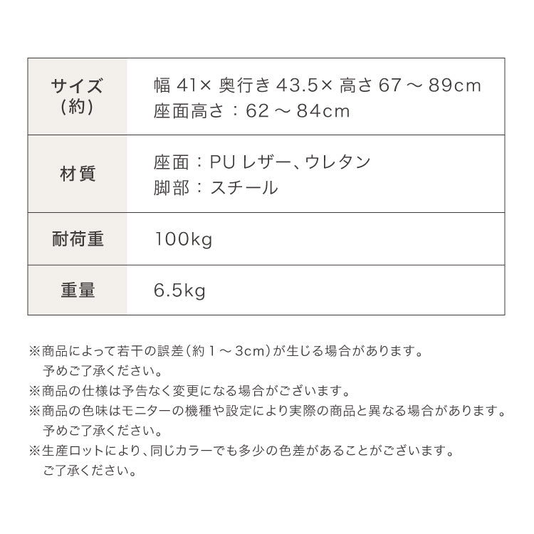 座面の高さ:62cm~84cm