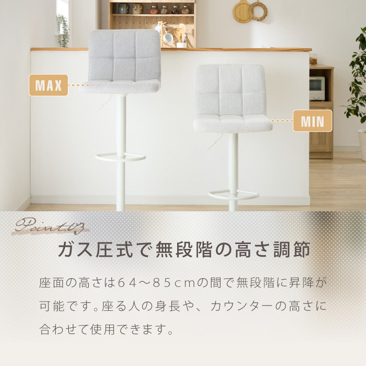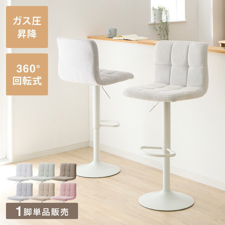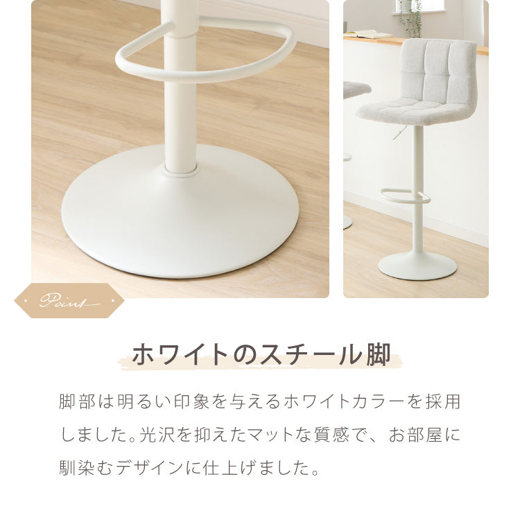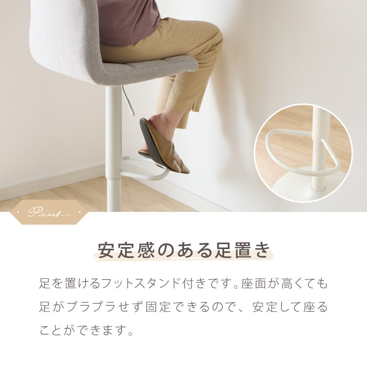 カウンターチェア、ガス圧、回転式、昇降式、ガス圧昇降、背もたれ付き、ファブリック、ナチュラル、モダン、スチール、かわいい、北欧、おしゃれ、韓国風、韓国インテリア