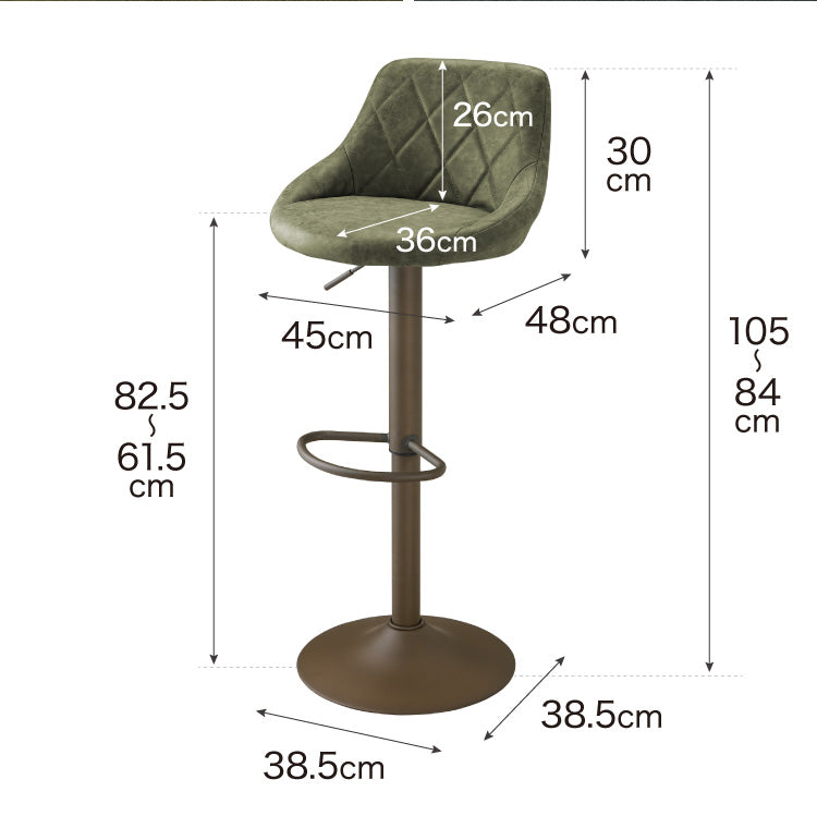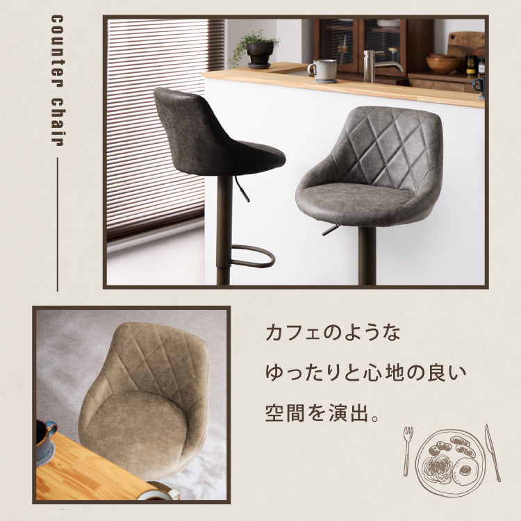 カウンターチェア、ガス圧、回転式、昇降式、ガス圧昇降、背もたれ付き、レザー、ヴィンテージ、PUレザー