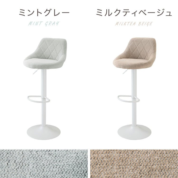 カウンターチェア、ガス圧、回転式、昇降式、ガス圧昇降、背もたれ付き、ファブリック、かわいい