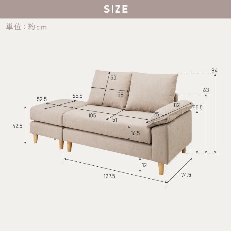 ソファー 2人掛け 幅127cm カバーリング オットマン cozapls カウチ ウレタン クッション L字 滑り止め ソファベッド ダイニング リビング おしゃれ 背もたれ ごろ寝 ひとり暮らし ローソファ
